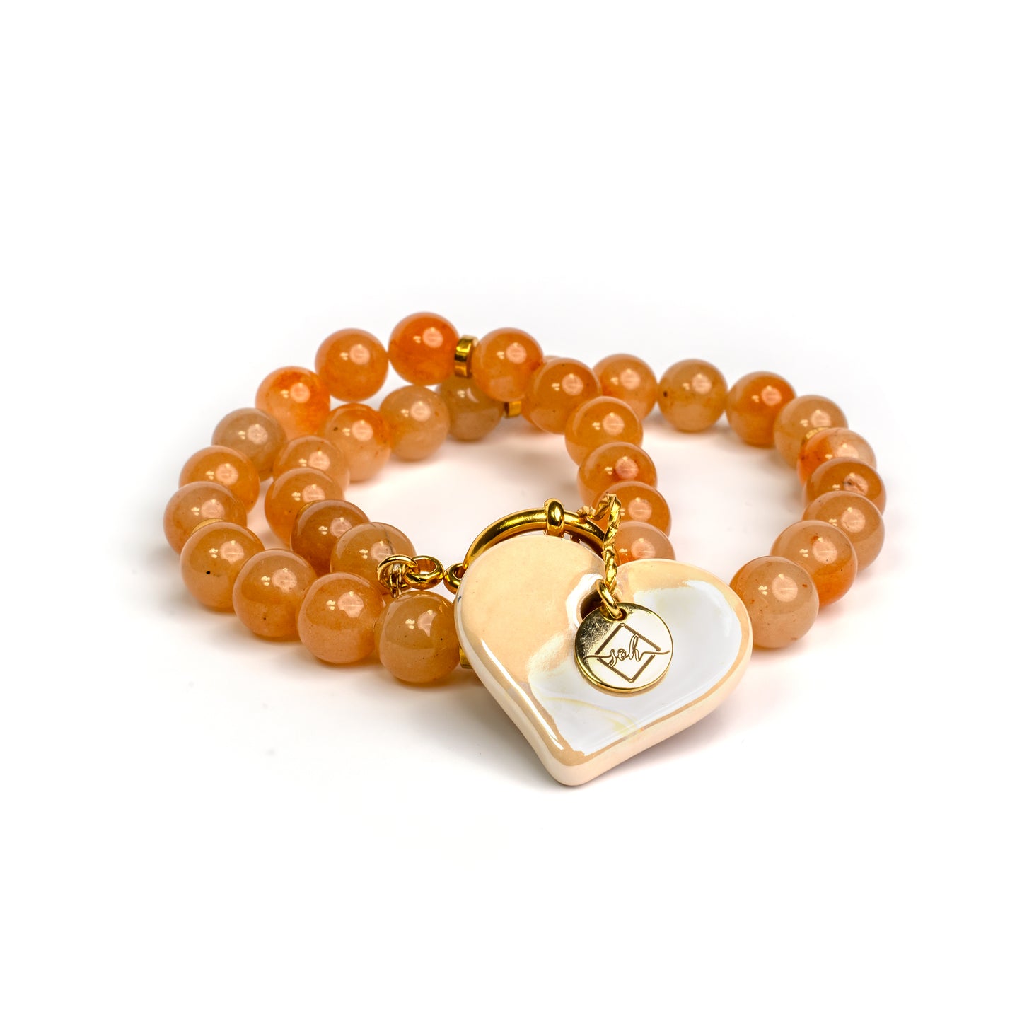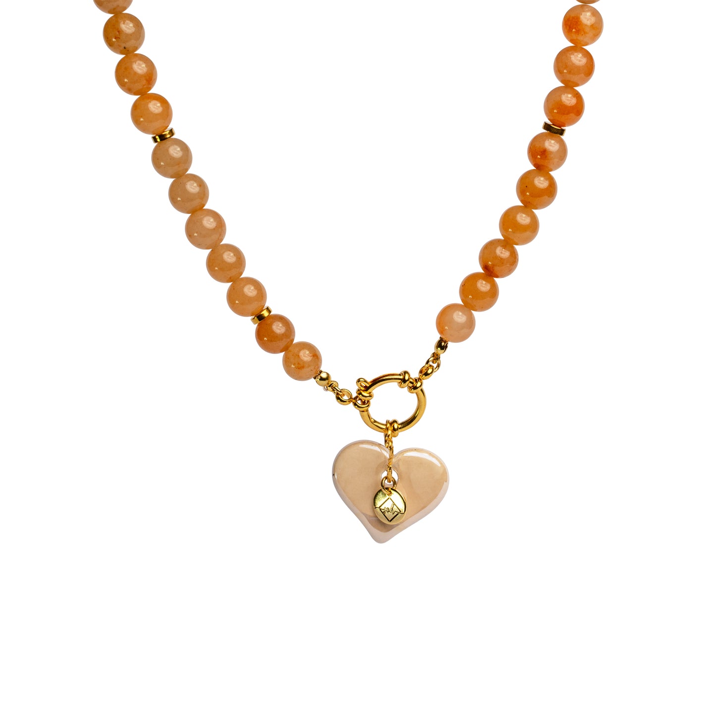 De handgemaakte Griekse keramische hart-bedel voegt een zachte, ambachtelijke touch toe, een subtiele herinnering dat ambitie en warmte perfect samen kunnen gaan.
